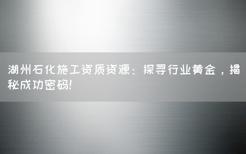 湖州石化作为一家拥有丰富资源和强大实力的企业,在施工领域具备了重要资质资源。通过与巴洛仕集团合作,湖州石化能够获得全方位、多层次的支持,并在行业中探寻黄金机会。我们有理由相信湖州石化将继续保持其领军地位,并取得更加辉煌的成就!