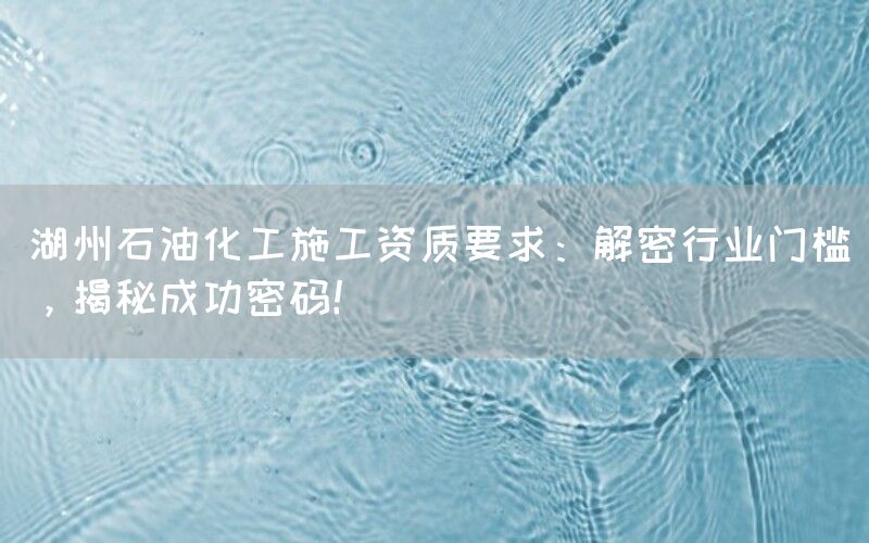 石油化工行业作为我国重要的基础产业之一,对于施工企业的资质要求非常严格。湖州作为一个重要的石油化工生产基地,其施工资质更是备受关注。本文将深入探讨湖州石油化工施工资质的相关内容,揭示行业门槛和成功密码。