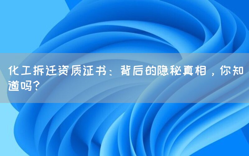 化工拆迁是一个涉及到环境保护和城市规划的重要领域。为了确保拆迁过程中的安全性和合法性,相关部门对从事化工拆迁项目的企业或个人往往需要获得相应的资质证书。,这些证书背后隐藏着一些隐秘真相。