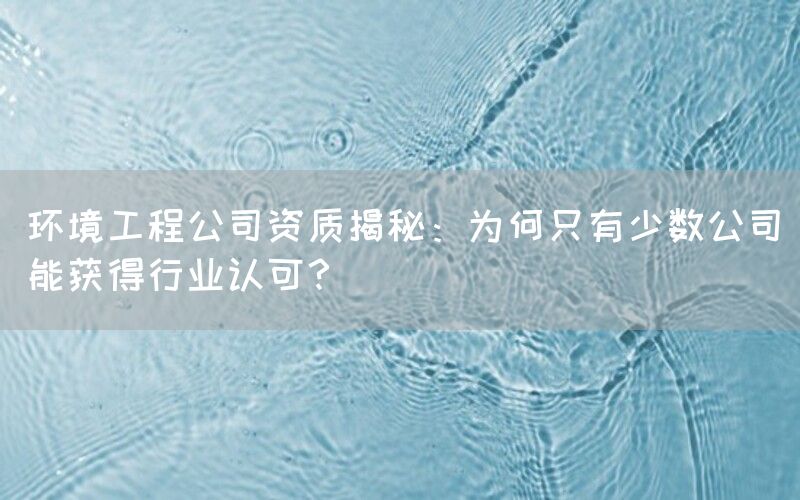 在环境保护领域,只有少数公司能够获得行业的认可和资质。这是因为环境工程涉及到许多专业知识和技术要求,需要具备一定的实力和经验才能胜任。以下将从几个方面来解释为什么只有少数公司能够获得行业认可。