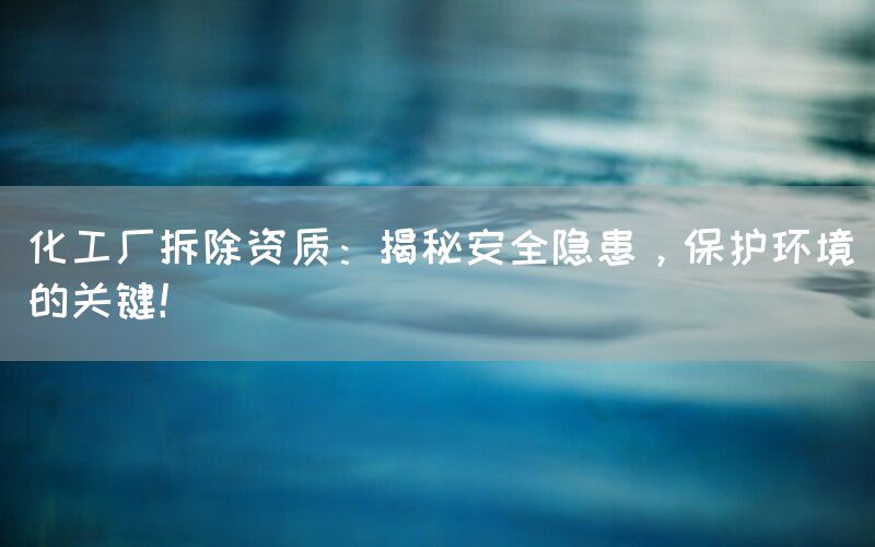 化工厂作为一种高风险行业,其拆除过程中存在着诸多安全隐患。获取合适的拆除资质是保护环境和人民生命财产安全的关键。本文将揭秘化工厂拆除过程中的安全隐患,并探讨如何通过合法渠道获得相关资质,以确保环境和公众利益。