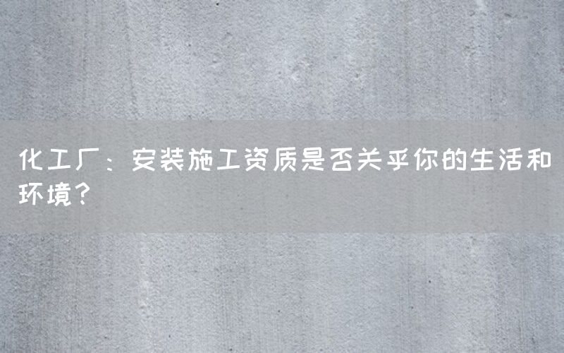 化工厂安装施工资质对于我们的生活和环境具有重要影响。它不仅关乎到环境保护、安全生产和法律合规等方面,还需要专业服务提供商来协助企业完成相关程序。在建设化工厂时务必重视安装施工资质,并与专业机构合作以确保项目顺利进行。