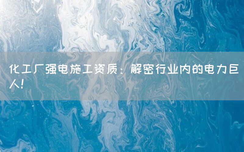 化工厂是一个高度复杂且具有高风险的生产环境,对于强电施工拥有合适的资质是至关重要的。在这个领域中,一家公司若能获得化工厂强电施工资质,将成为行业内的巨人。