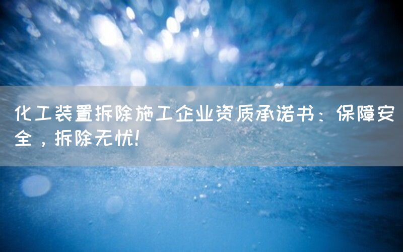 在化工行业中,装置的拆除是一个复杂而危险的过程。为了确保施工过程中的安全和顺利进行,选择一家具备专业资质和经验的拆除施工企业至关重要。本文将介绍化工装置拆除施工企业资质承诺书,并探讨其重要性。