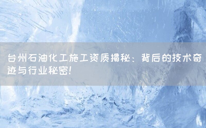 石油化工是现代工业中不可或缺的重要领域之一,而在这个领域中,台州作为中国重要的石油化工基地之一,拥有众多具备施工资质的企业。本文将揭示台州石油化工施工资质背后隐藏的技术奇迹和行业秘密。