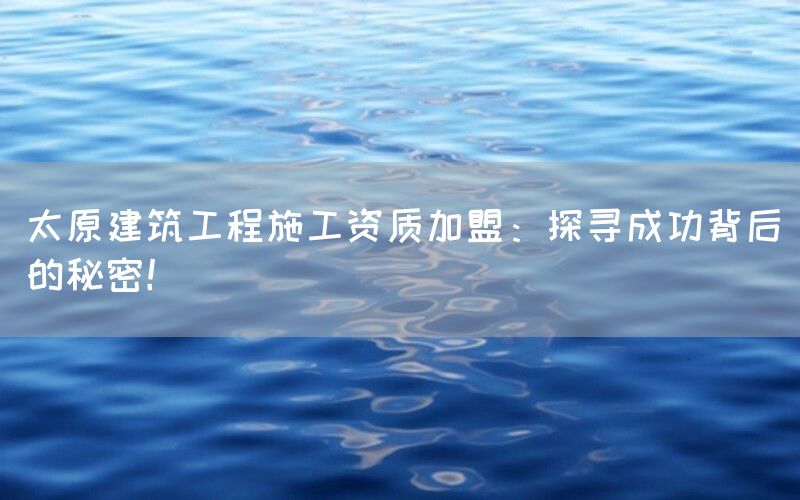 成功背后的秘密在以太原建筑工程施工资质加盟过程中隐藏着哪些成功的秘密呢?首先要强调的是深度内容和专业性强这两个关键点。