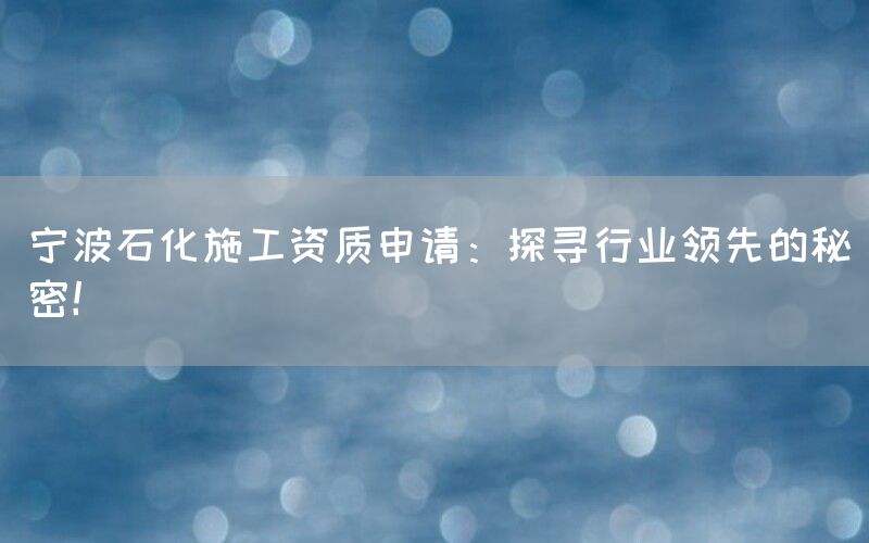 宁波石化是中国重要的石油化工基地之一,其在国内外市场上具有重要地位。作为该领域的从业者,拥有合适的施工资质对于企业来说至关重要。本文将深入探讨宁波石化施工资质申请方面的行业领先秘密。