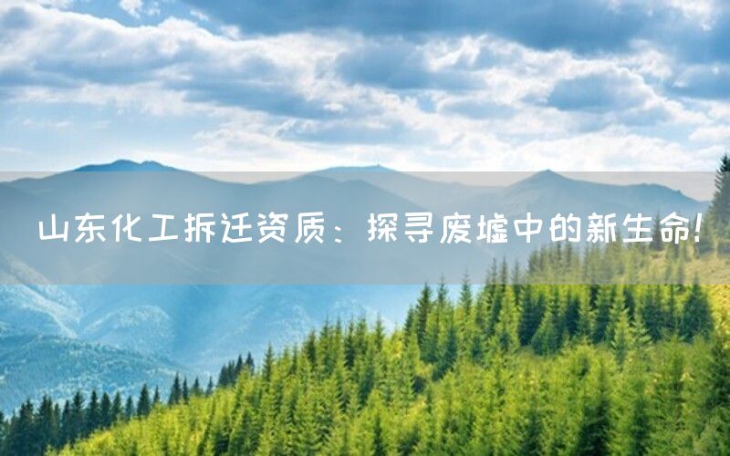 山东化工拆迁资质:开启转型升级之路在进行山东地区化工拆迁时,必须具备相应的拆迁资质。这些资质不仅要求具备丰富的经验和专业知识,还需要了解相关法律法规,并能够合理规划和管理整个拆迁过程。
