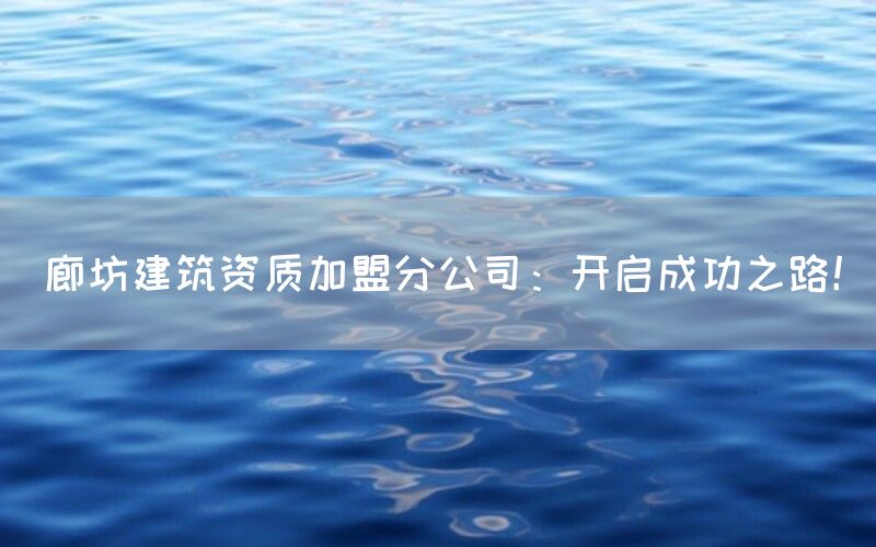 建筑行业一直以来都是一个朝阳产业,随着城市化进程的不断推进,对于建筑工程的需求也越来越大。在这个行业中,拥有合法资质是企业发展的基石。对于许多小型企业而言,获取和维持合适的建筑资质并非易事。在廊坊地区开设一家专门提供建筑资质加盟服务的分公司将会成为一个极具潜力和前景的创业选择。