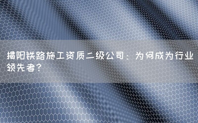 揭阳铁路施工资质二级公司作为行业领先者,其成功离不开多个方面的因素。本文将从深度、专业性、稀缺性、重复性低、逻辑清晰等角度分析该公司成为行业领先者的原因,并探讨其在人工写作特点和内容质量上的优势。