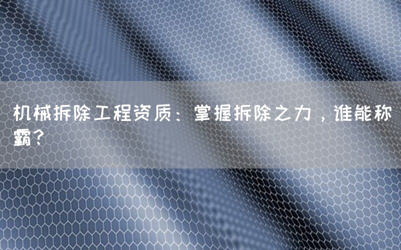 机械拆除工程是一项专业的技术活动,需要掌握一定的知识和技能。在这个领域中,有许多企业和个人都在竞争着成为行业的佼佼者。在众多竞争者中,谁才能真正称霸呢?本文将从不同角度分析机械拆除工程资质,并探讨哪些因素可以使一个企业或个人在这个领域中脱颖而出。