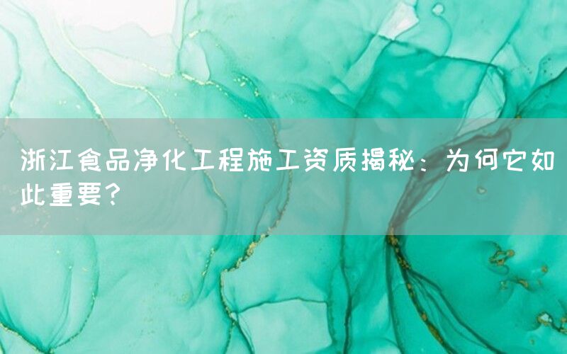 食品安全一直是人们关注的焦点,而食品净化工程施工资质在保障食品安全方面起着至关重要的作用。本文将深入探讨浙江食品净化工程施工资质的重要性,并解释为什么它在这个行业中如此受到重视。