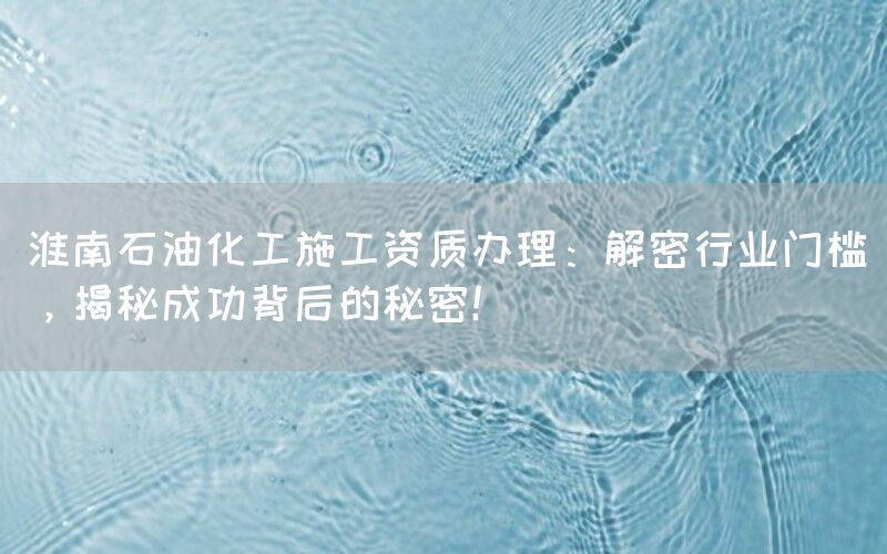淮南石油化工施工是一个具有较高门槛和专业性要求的行业。在这个行业中,企业需要通过办理相应的资质才能参与相关项目的建设和施工。本文将为您揭示淮南石油化工施工资质办理的过程、要求以及成功背后的秘密。