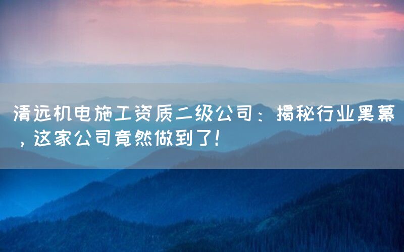 机电施工是建筑领域中的重要环节之一,需要具备相应的资质才能进行相关业务。在清远地区,有一家引人注目的二级公司,在行业内取得了巨大成功。背后隐藏着令人震惊的黑幕。