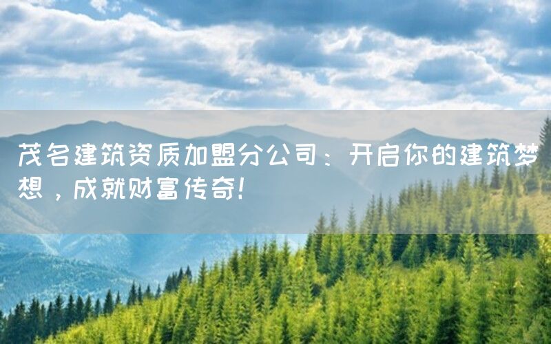 4. 成就财富传奇加入一家具备实力和信誉的建筑资质加盟分公司,并通过他们提供的专业支持和资源优势,在茂名这个蓬勃发展的市场中开展自己的建筑事业,将有机会成就财富传奇。茂名地区不断涌现出各种商业、住宅及基础设施项目,而作为一名具备丰富经验和专业能力的建筑从业者,您将有机会参与到这些重要工程中,并获得可观利润。
