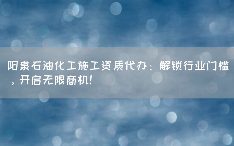 为何选择代办服务?代办服务能够帮助企业解锁行业门槛。在阳泉石油化工领域,施工资质是参与项目投标和承接工程的必备条件。拥有合适的资质可以让企业获得更多机会,并提高中标率。通过选择专业代办服务,企业可以借助专家团队的经验和资源来快速获取所需资质,避免因自身实力不足而错失商机。