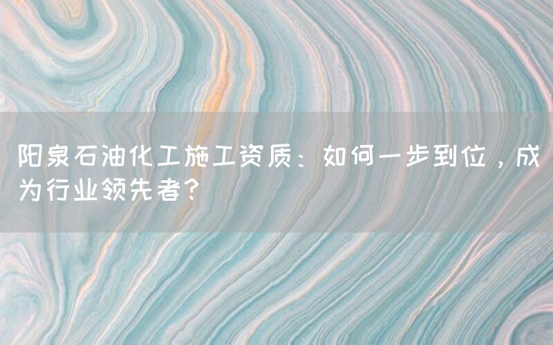 阳泉石油化工施工资质是企业在石油化工领域中的重要凭证,具备该资质意味着企业具备了从事石油化工施工项目的能力和经验。想要一步到位成为行业领先者,并不是一件容易的事情。下面将从多个方面探讨如何实现这个目标。