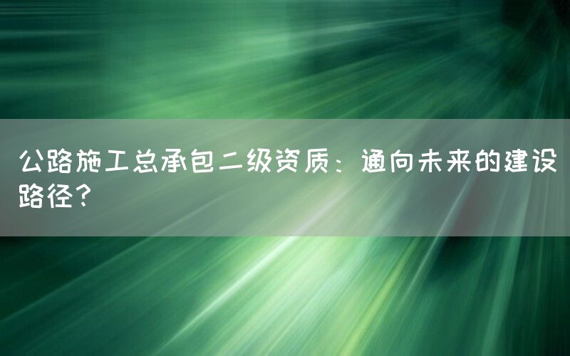 随着我国经济的高速发展,基础设施建设的需求不断增长,特别是公路建设作为连接城市、促进地区经济发展的重要载体,其建设质量和效率直接影响着国家和地方的发展进程。在公路建设领域,拥有相应资质的施工企业尤为关键,而公路施工总承包二级资质的获得,不仅是企业发展的一种象征,更是通向未来建设路径的重要通行证。