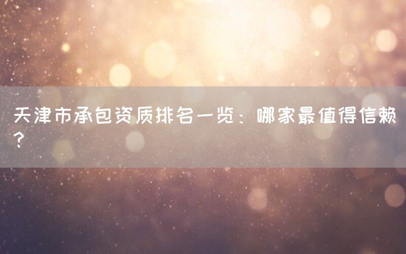 在天津市,选择一家信赖的建筑总承包公司至关重要,特别是在大型工程项目中。本文将为您详细分析天津市的承包资质排名,并探讨如何评估和选择最合适的合作伙伴。