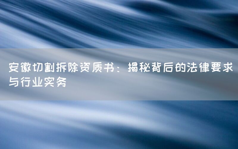 安徽切割拆除行业作为建筑拆除领域的重要分支,其专业性和法律要求不容忽视。本文将深入探讨安徽切割拆除资质书的相关内容,包括资质的申请条件、法律法规的遵循以及行业实务中的关键问题。