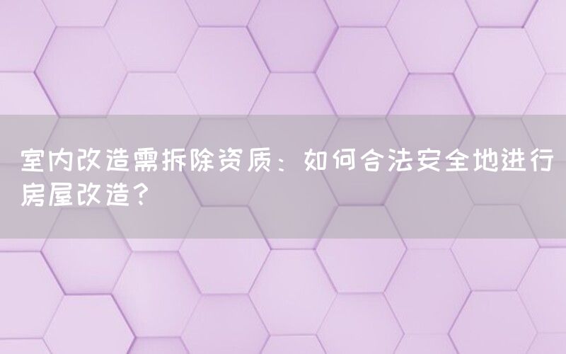进行室内改造并进行拆除工作是一个复杂而又关键的过程。合法性、安全性和环保性是进行改造时不可忽视的重要因素。通过遵循当地法律法规、选择合格的承包商,并采取适当的安全和环保措施,可以确保改造过程顺利进行,同时最大限度地减少潜在的风险和法律问题。