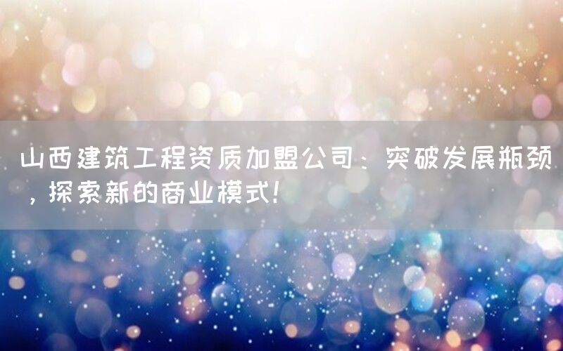 随着建筑行业竞争的日益激烈,山西的建筑工程公司们面临着诸多发展挑战。如何突破现有的发展瓶颈,探索新的商业模式成为了摆在业界面前的一道难题。本文将深入探讨在当前市场环境下,如何通过加盟模式实现资质突破和商业创新。