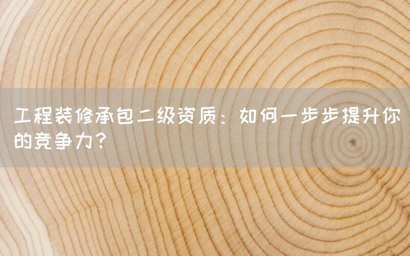 在当前竞争激烈的建筑市场中,持有工程装修承包二级资质不仅是企业合法运营的基本条件,更是提升市场竞争力的关键因素。本文将从多个方面探讨如何逐步提升这一资质的竞争力,帮助企业在行业中脱颖而出。