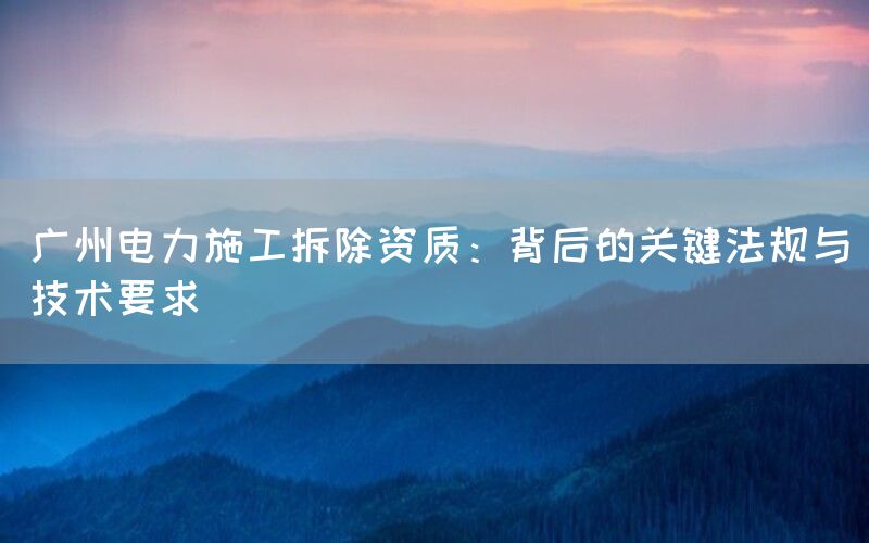 在当今建筑工程行业中,电力施工拆除是一项关键而复杂的工作,涉及多方面的法规和技术要求。本文将深入探讨广州地区电力施工拆除资质的核心内容,从法规遵循到技术标准,以及获取相关资质的途径。