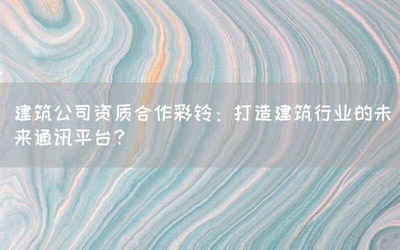 总的彩铃技术作为建筑行业未来通讯平台的关键技术之一,不仅提升了沟通效率,还加强了信息安全和管理的精确性。通过全国低费率资质合作、项目联营、化工拆除项目合作、环保项目合作、资质分立、分公司加盟等方式获得建筑总承包资质,石油化工总承包,水利水电总承包,机电总承包,环保等资质的途径,建筑公司能够更好地利用彩铃技术,推动行业发展,提升市场竞争力。