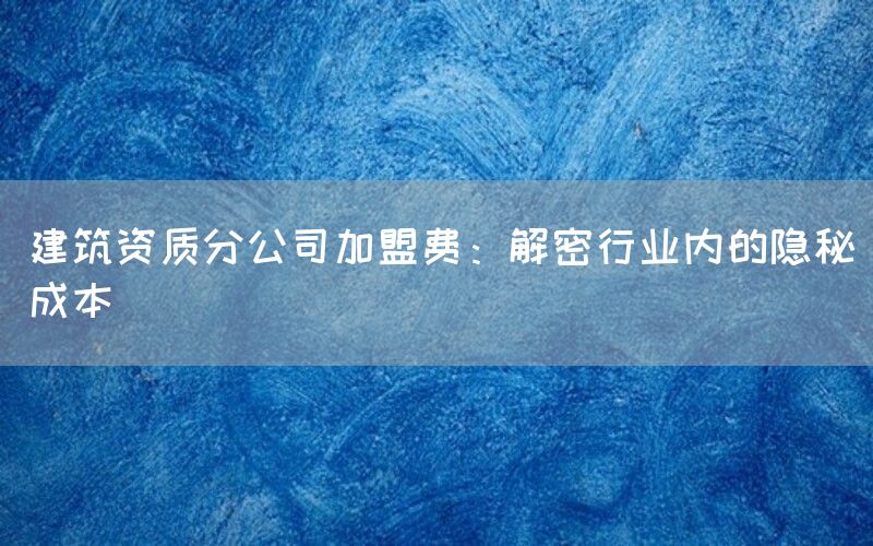 建筑资质分公司加盟的实际成本远不止加盟费用那么简单。它涉及到行政审批、技术和管理能力、法律政策风险以及市场竞争等多个方面。企业在选择加盟时,务必全面考量这些因素,并寻求专业的咨询和指导,以降低加盟过程中的各类风险,实现稳健和可持续的发展。