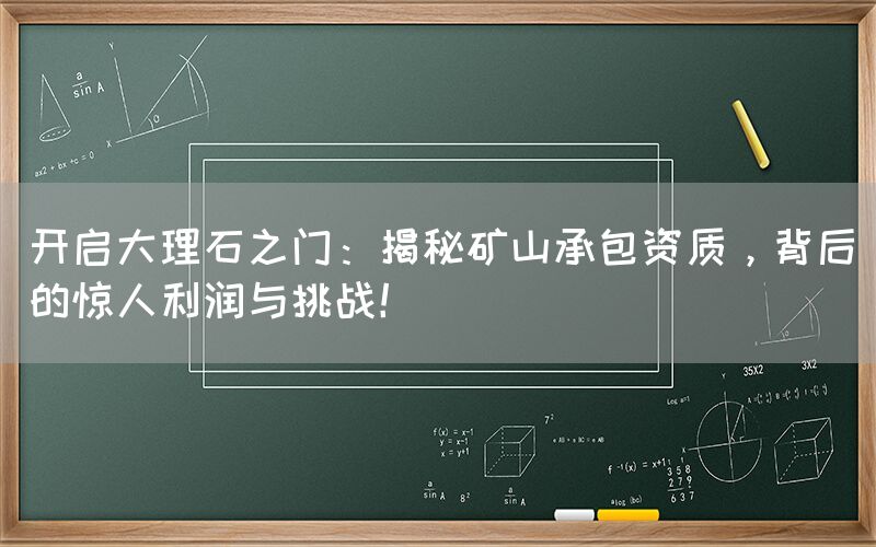 在现代建筑和基础设施建设中,大理石作为一种珍贵的建筑材料,扮演着重要角色。要开启大理石之门,从事矿山承包,首先需要获取相应的资质。这不仅是一项法律要求,更是进入这一利润丰厚领域的敲门砖。