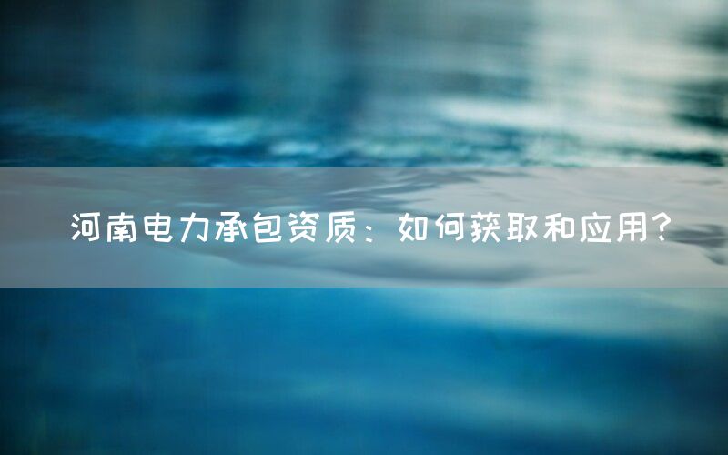 希望本文能为您在河南电力承包资质方面提供有益的指导和帮助。