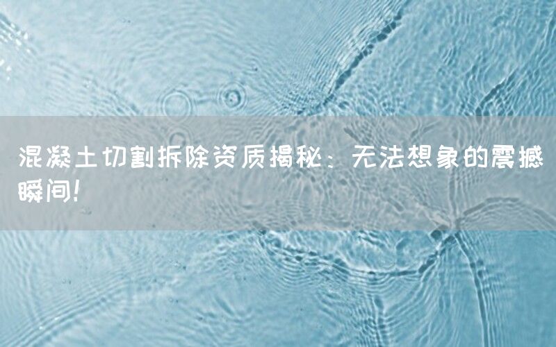 那么如何获取混凝土切割拆除资质呢?个人或企业需要满足一定的条件,如具备相关工作经验、拥有必要的设备和技术团队等。他们需要参加相应的培训课程,并通过考试获得相关证书。这些证书通常由建设部门或专业机构颁发。