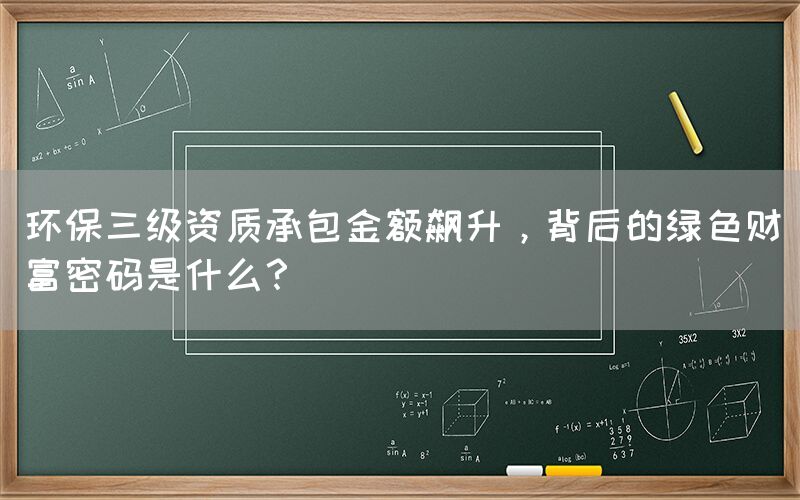 随着全球环境问题日益严峻,环保产业正迅速成为经济增长的新引擎。在这个背景下,环保三级资质承包金额飙升,揭示了一种新型绿色财富的崛起。这不仅仅是经济增长的数字,更是背后绿色发展理念与商业利益紧密交织的象征。