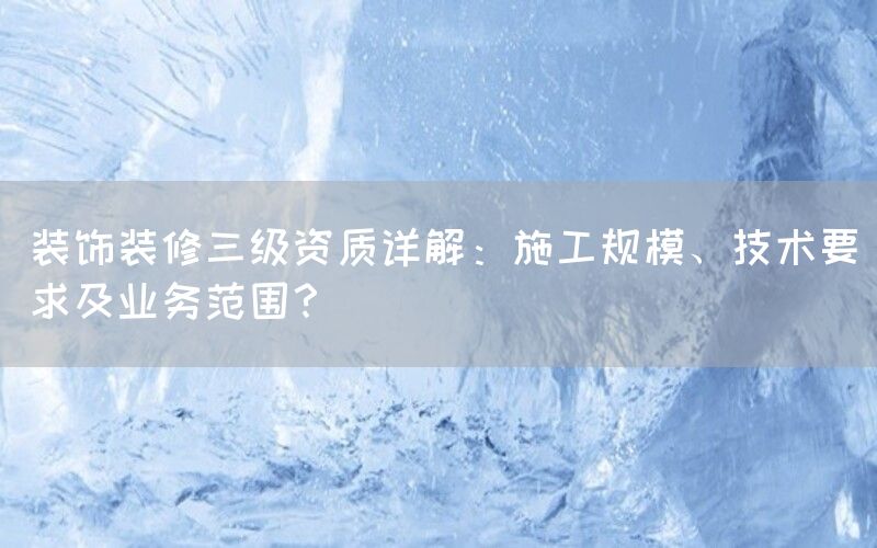 In conclusion, 三级装饰装修资质是一种较高级别的证书,在施工规模、技术要求以及业务范围上都有明确要求。持有该等级资质可以参与更大规模、复杂性较高且专业性强的装饰装修项目。通过各种合作方式也可以获得其他类型建筑总承包资质,从而进一步拓宽业务范围。
