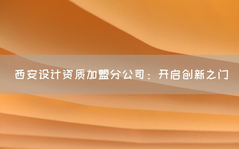 西安,这座千年古城,不仅仅是历史文化的瑰宝,也是现代建筑设计的热土。随着经济的快速发展和城市建设的日益完善,西安设计资质加盟分公司成为了众多企业追逐的目标。在这个充满机遇和挑战并存的时代,如何通过加盟分公司来开启建筑设计行业的创新之门,成为了业内人士共同关注的话题。