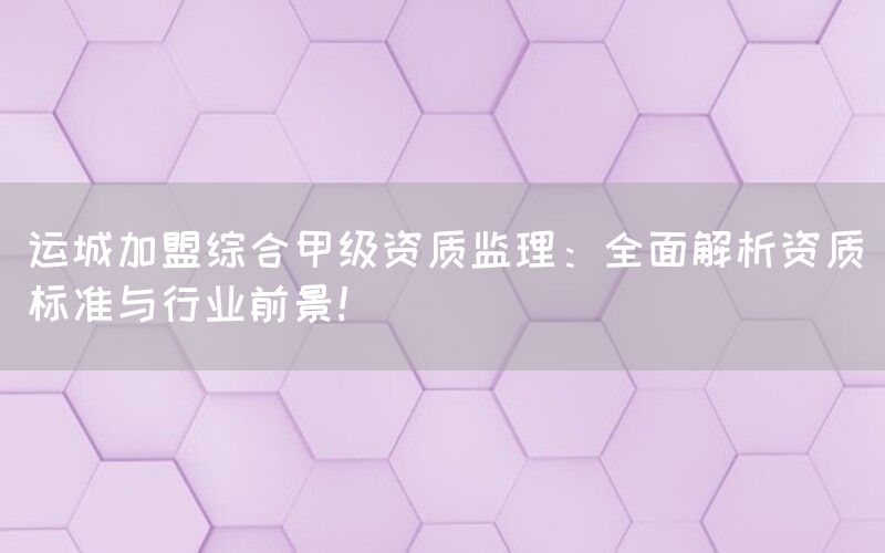 在建筑行业中,甲级资质监理是保障工程质量和安全的重要环节。运城地区作为资质监理服务的重要承载地,其甲级资质监理标准和行业前景备受关注和探讨。
