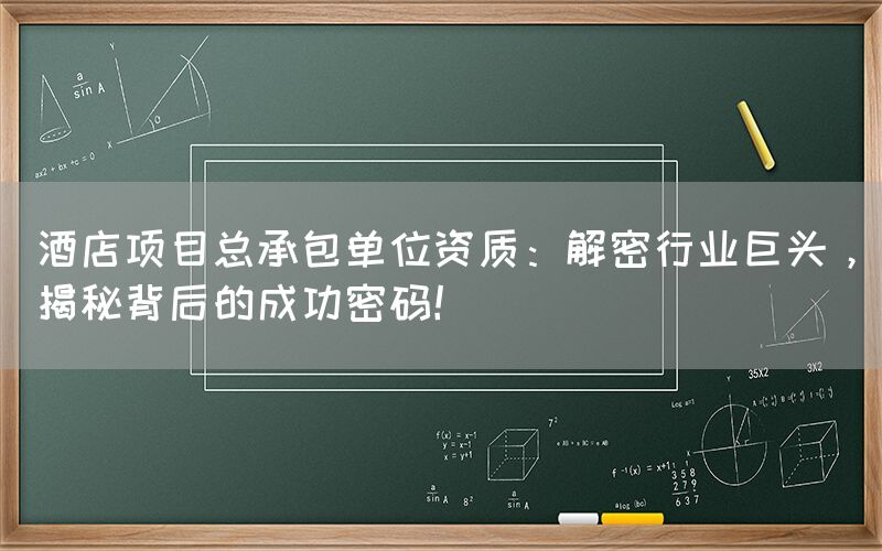 在建筑行业中,酒店项目总承包单位资质是一项重要的认证,它代表着企业在该领域具备一定的实力和能力。如何获得这样的资质?本文将揭秘背后的成功密码。