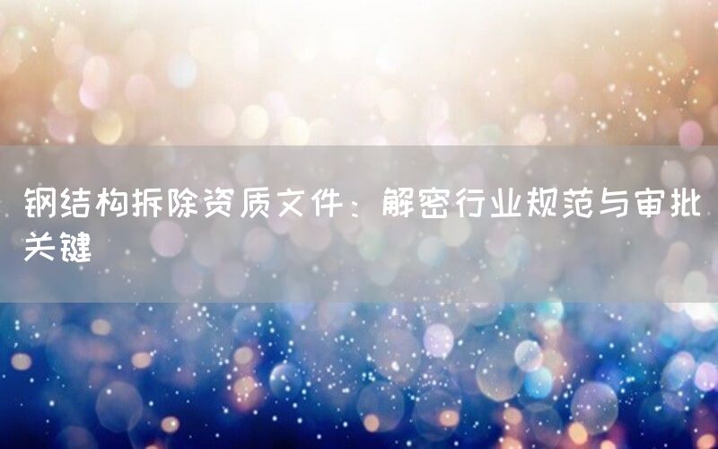钢结构拆除是建筑行业中的一项关键工作,涉及到复杂的工程操作和严格的安全要求。在进行钢结构拆除工作之前,获取合法的拆除资质文件是至关重要的步骤。本文将深入探讨钢结构拆除资质文件的相关内容,包括行业规范的解读和审批关键点的分析。