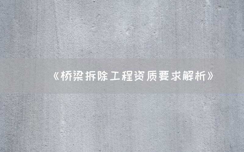 桥梁拆除工程是一项涉及众多安全与环保要求的复杂施工活动,在进行此类工程前,必须确保具备相应的资质。以下是对桥梁拆除工程所需资质的详细说明: