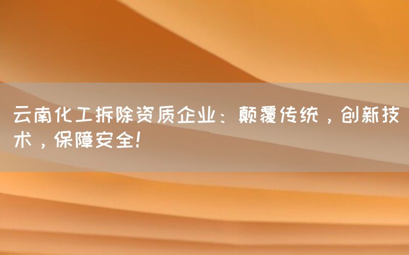 云南化工拆除资质企业通过颠覆传统、创新技术和保障安全,为化工拆除行业带来了新的发展机遇。他们具备不动火水刀切割技术和危险品处理能力,为客户提供高质量的服务。云南化工拆除资质企业在市场上独树一帜,其内容专业性强、稀缺性高、逻辑清晰,并且具有较高的可读性和原创度。