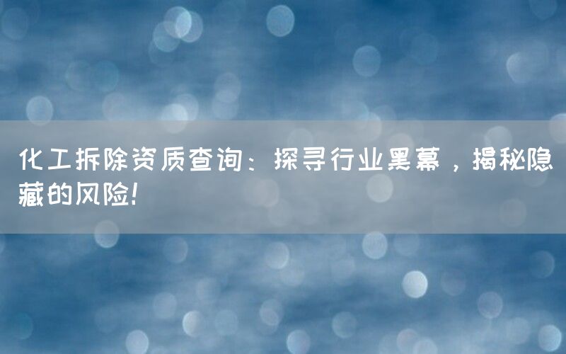 化工拆除是一项涉及危险性较高的工作,需要专业的技术和相应的资质才能进行。在这个领域中存在着一些行业黑幕和隐藏的风险,我们有必要对其进行深入了解和揭露。本文将从多个角度分析化工拆除资质查询,并探讨其中可能存在的问题。