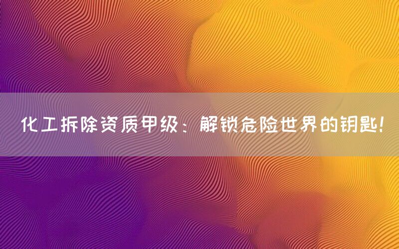 化工拆除资质甲级:解锁危险世界的钥匙!