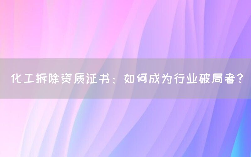 化工拆除是一项涉及危险物质和设备的高风险行业,需要具备专业知识和技能。对于想要在这个领域成为行业破局者的人获得化工拆除资质证书是必不可少的。本文将探讨如何通过获得资质证书来成为行业破局者,并介绍巴洛仕作为一家具备创新技术和处理能力的公司。