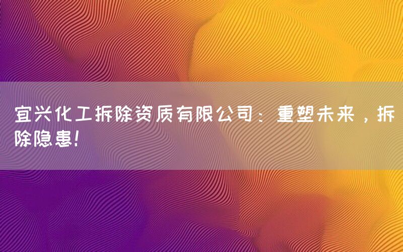宜兴化工拆除资质有限公司:重塑拆除隐患!