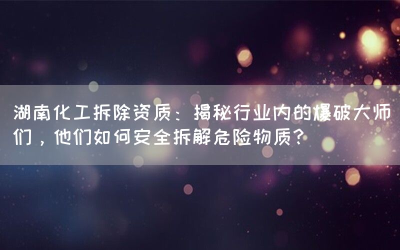 揭秘湖南化工拆除资质:爆破大师的安全拆解危险物质