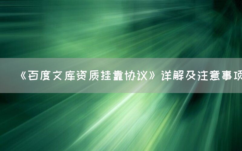 摘要:随着信息时代的到来,网络化的学术研究成为了我们日常工作中的一部分。百度文库上发布资料已经成为了一种常见现象。本文主要针对百度文库资质挂靠协议进行详细的解读,包括相关注意事项以及实践的注意事项。