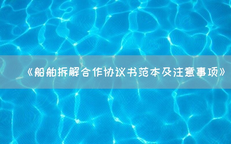 本文介绍了《船舶拆解合作协议书范本及注意事项》,从船舶拆解合作协议书的主要内容、船舶拆解合作的注意事项、船舶拆解中的安全问题以及船舶拆解的环保问题等方面进行了详细介绍。针对以上问题,我们应该注重环保和安全问题,在船舶拆解工作中要严格遵守合同规定和法律法规,从而确保整个拆解过程的安全和顺利进行。