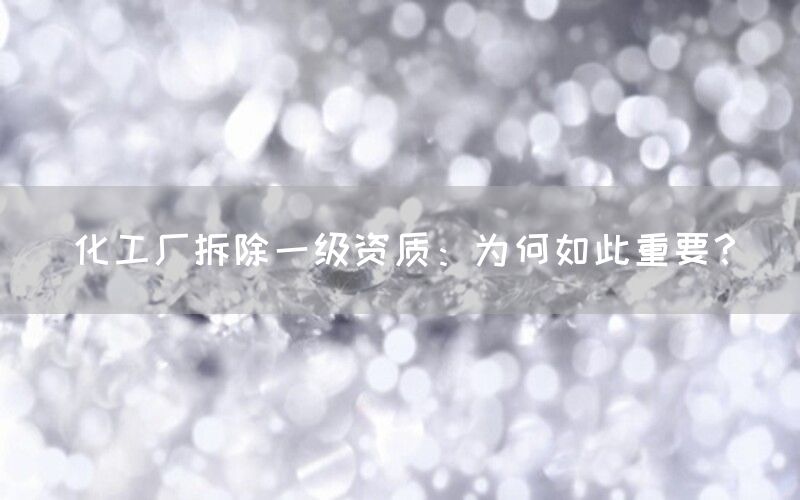 化工厂拆除是一个复杂而危险的过程,需要专业知识和技术来确保安全和环境保护。拥有一级资质对于从事化工厂拆除项目的企业来说非常重要。将探讨为何一级资质如此重要,并解释其在该行业中的价值。