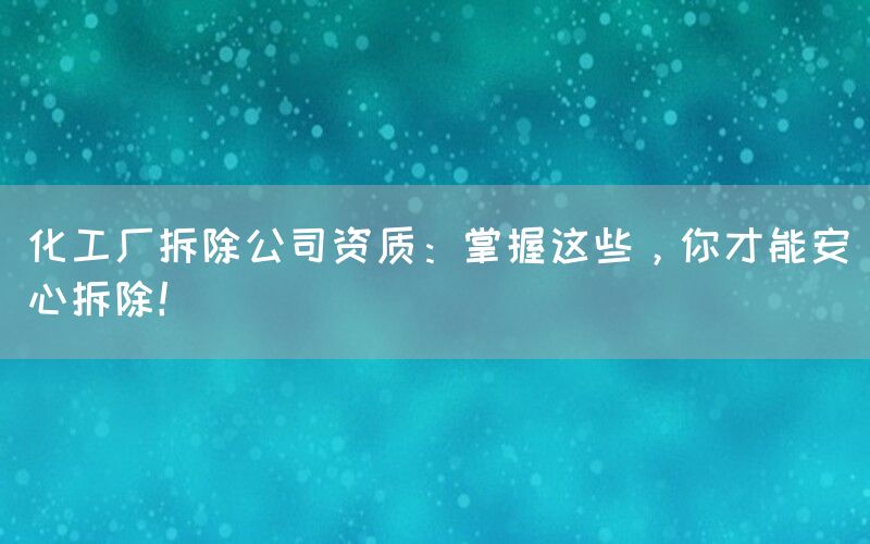 化工厂拆除是一项复杂而危险的任务,需要专业的技术和丰富的经验。选择一家具备合适资质的拆除公司至关重要。在这篇文章中,我们将探讨化工厂拆除公司资质的重要性,并介绍如何确保安心进行拆除。